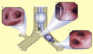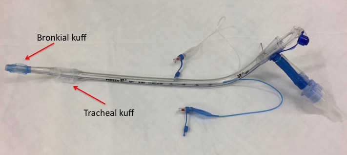 The first option is rarely used, and only in emergencies, where severe bleeding in one lung’s airways threatens to spread to the other lung, risking the ability to ventilate the patient. If neither of the two other options is immediately available, intubating the main bronchus on the non-bleeding side with a single-lumen tube may be life-saving. This is easier on the right side by advancing the tube distally past the carina. Intubation of the left main bronchus is done using a bronchoscope as a guide.